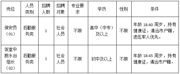 清遠(yuǎn)市清城區(qū)機(jī)關(guān)事務(wù)管理局因工作需要,根據(jù)《關(guān)于印發(fā)<清遠(yuǎn)市清城區(qū)機(jī)關(guān)事業(yè)單位專(zhuān)項(xiàng)工作聘員、合同制聘員以及后勤服務(wù)類(lèi)人員管理辦法>的通知》(城區(qū)人社〔2022〕20號(hào))文件精神,面向社會(huì)公開(kāi)招聘后勤服務(wù)類(lèi)人員2名,現(xiàn)將有關(guān)事宜公告如下: