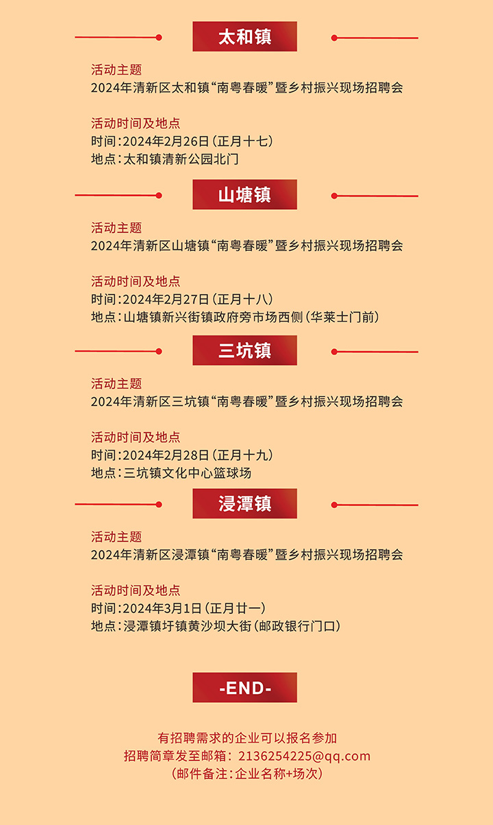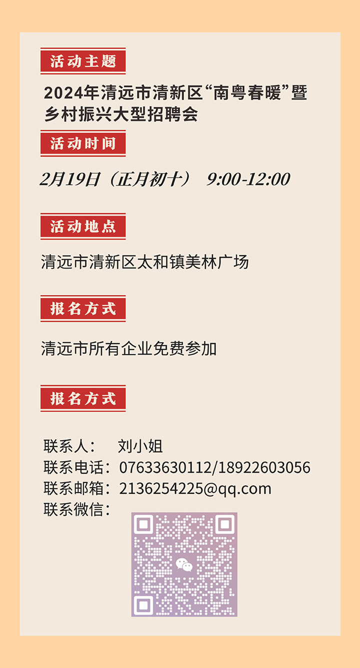 招聘會預告|2024年清遠市清新區(qū)“南粵春暖”暨鄉(xiāng)村振興大型招聘會